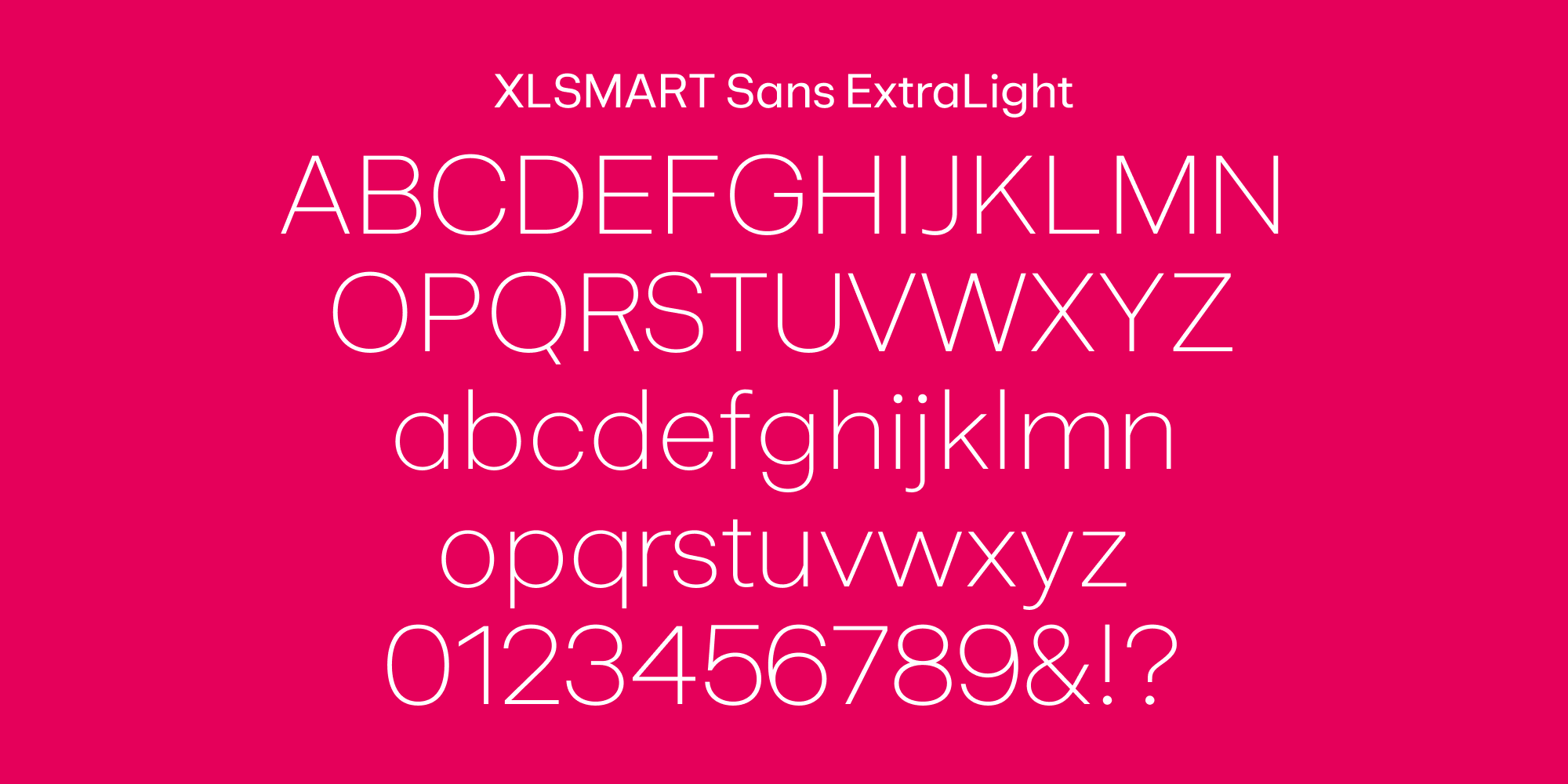 XLSMART Sans is a modern geometric sans serif designed to reflect the brand’s precision and empathy in equal measure. Built for clarity across data-driven environments, it balances functional simplicity with subtle warmth through open counters, rounded details, and compact forms.